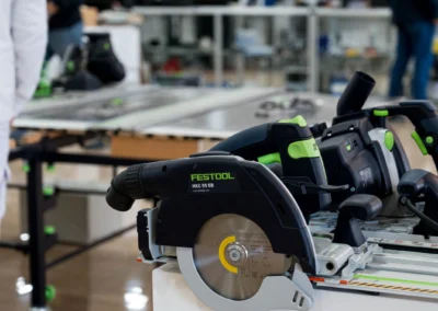 Durante todo el evento, el equipo de Festool realizó demostraciones en vivo de sus herramientas más destacadas, mostrando su capacidad en precisión, potencia y ergonomía.